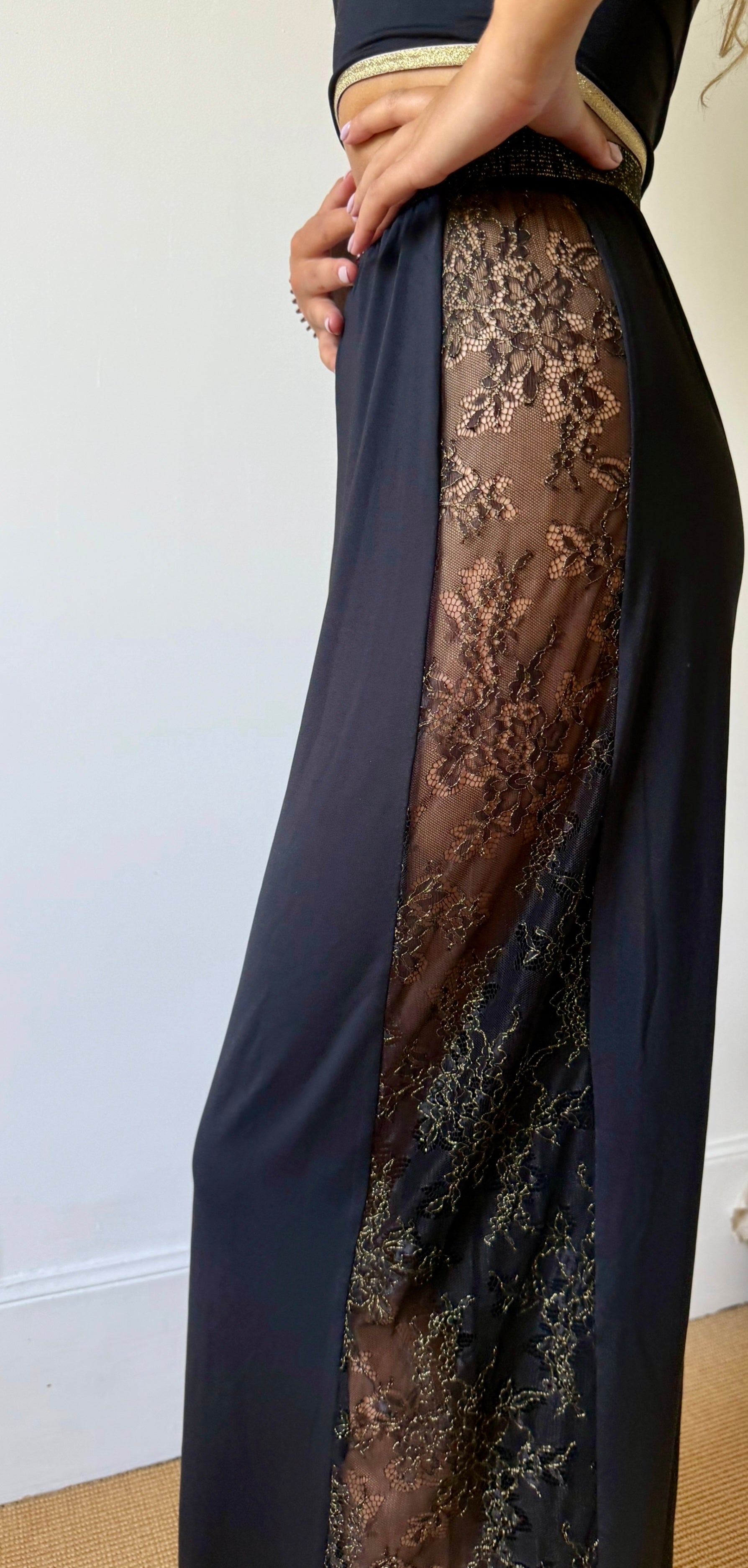 Laissez-vous séduire par notre pantalon noir et doré. Idéal pour vos journées à la plage au-dessus d'un maillot de bain ou vos soirées cocktails.