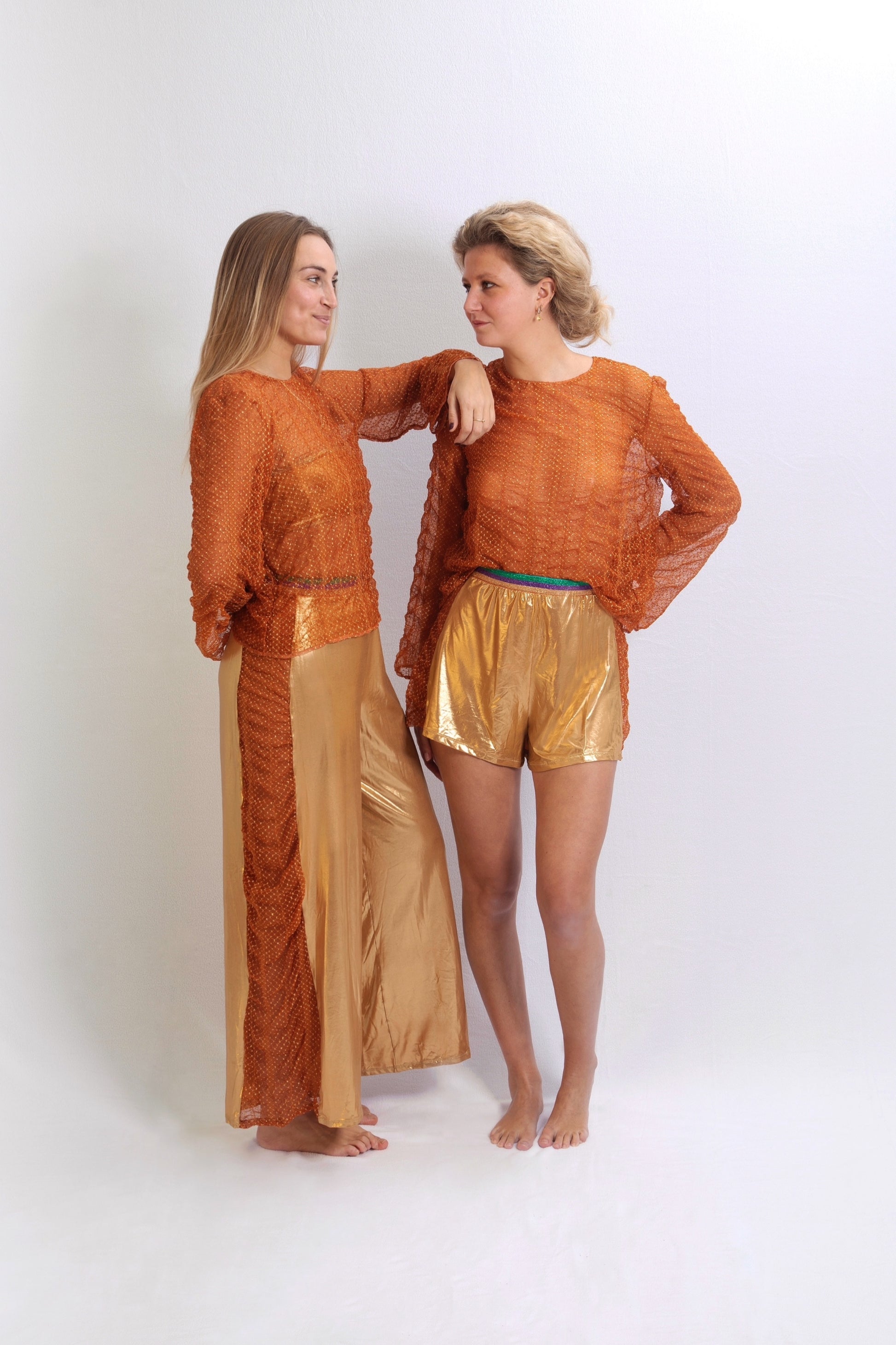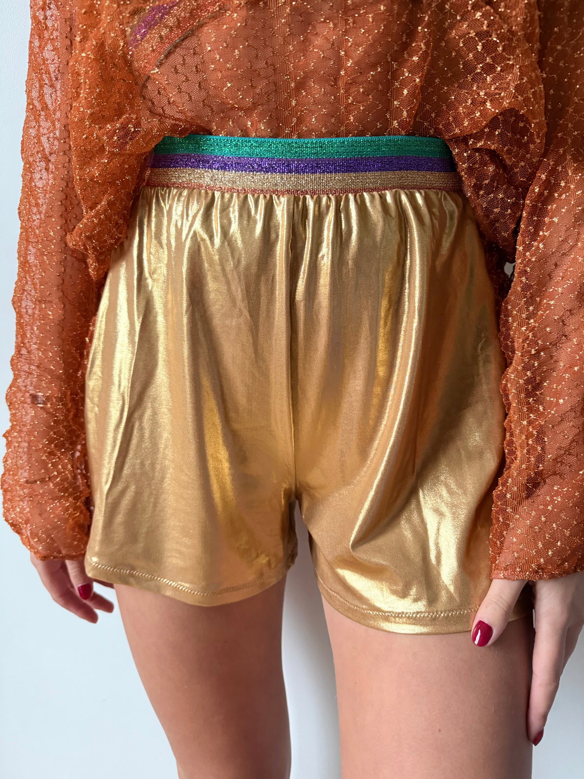 Laissez-vous séduire par notre short orange et doré, Idéal pour vos journées à la plage au-dessus d'un maillot de bain ou vos soirées cocktails.