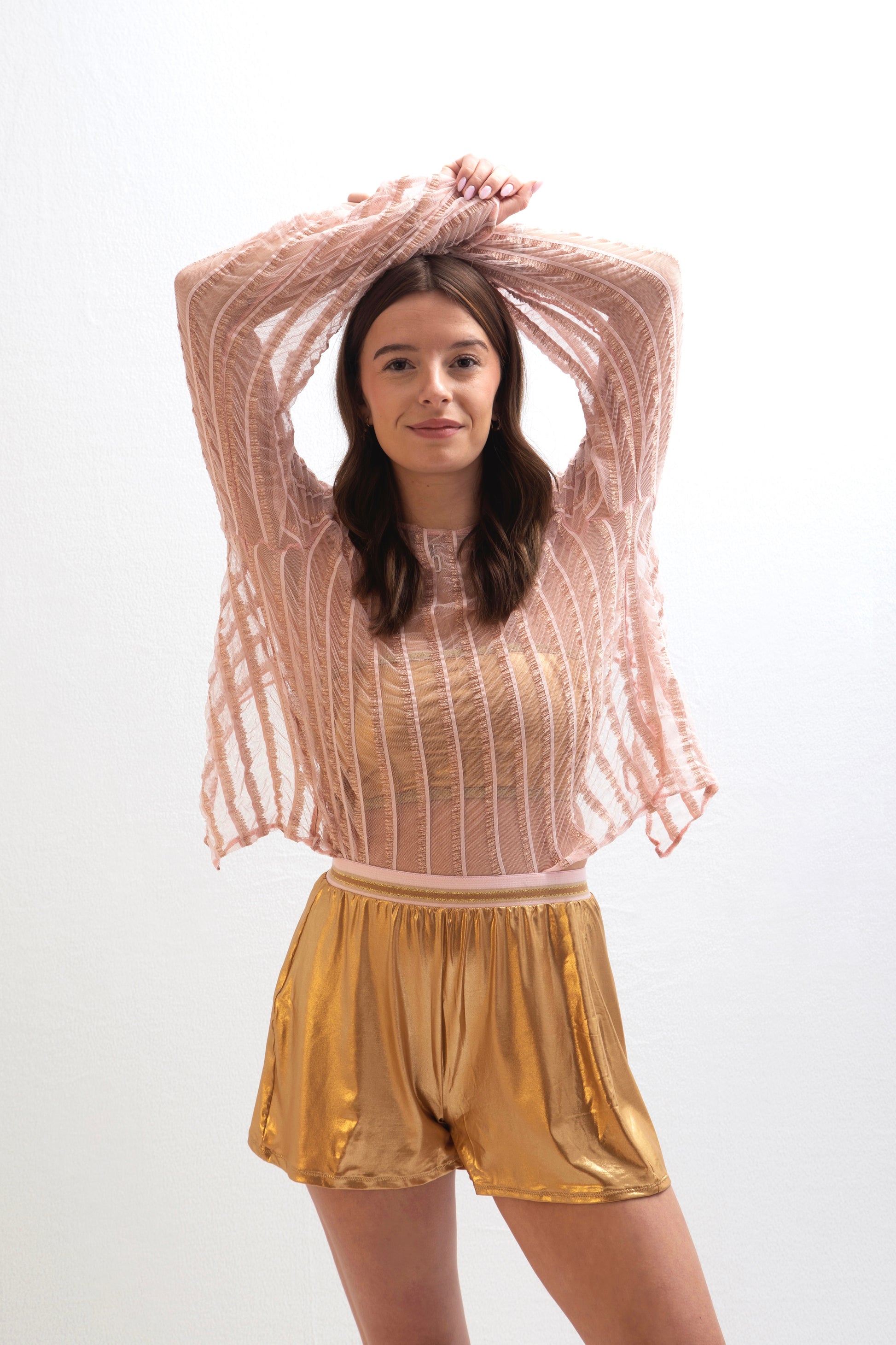 Si vous êtes moins à l'aise avec les vêtements transparents, le short Holi est celui qu'il vous faut. Sa taille est maintenue par un élastique pailleté qui assure un ajustement parfait.